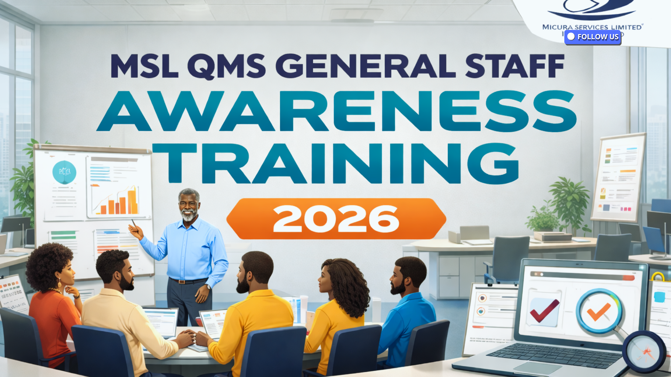 On Wednesday, 15 April 2026, Micura Services Limited hosted a General Staff Awareness Training on the ISO 9001:2015 Quality Management System (QMS), facilitated by our consulting partners, Fibalab Services Limited. The session brought together staff from across the organisation for an immersive day of learning, reflection, and renewal of our collective commitment to quality excellence.